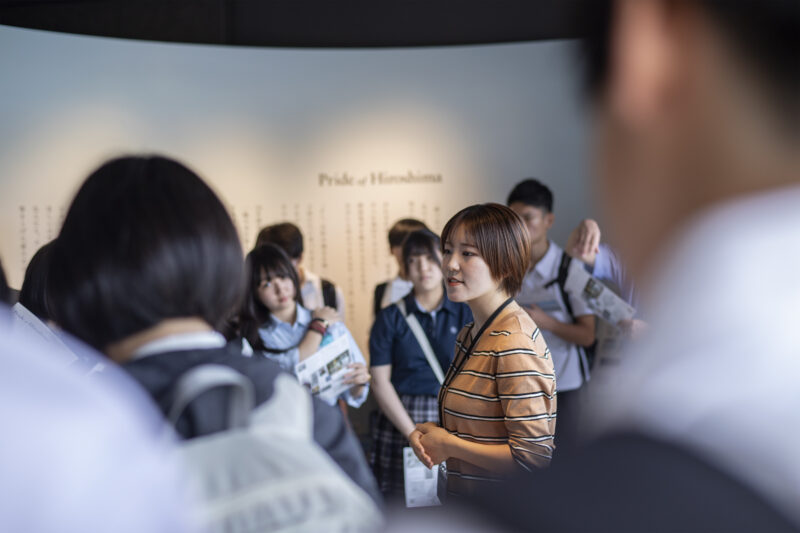 Pride of Hiroshima展はセッションのテーマ「Hiroshima Spirit ~被爆からの復興、その先へ~」を考える場になっています。学生たちは各企業やクリエイターたちと協働し、企画も提案。新たなPride of Hiroshima、Pride of meを表現してくれています。その若いメンバーを代表して、学生たちを統括する藤山実咲さんが舞台に上がります。当日は学生アテンドメンバーたちも現地で観覧するようです。現地参加だけでなくオンラインでも参加できます。
